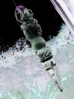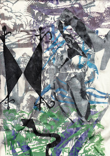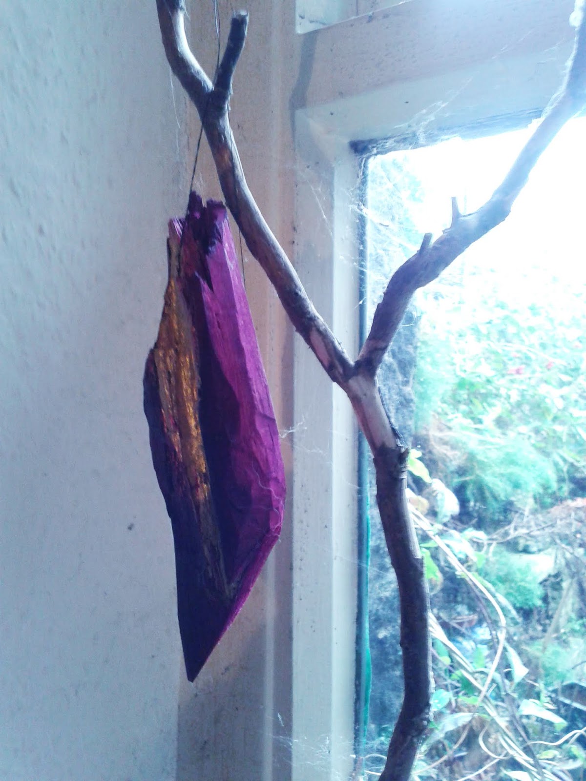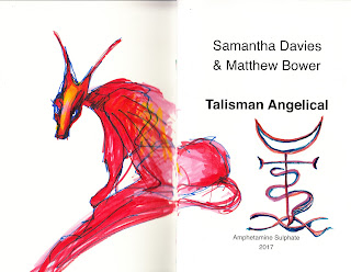 the base, the ground upon which the dakini stands, nay emerges from, is a red hexagram. a doubled phenomenon source: a red triangle being the simple firesign for energy/fire. the appearance of the three dimensional version I encountered in the dakiniland texts by Kelsang Gyatso where a double tetrahedron is envisaged. to help visualisation of this form (inside of which the dakini resides) I have built crude versions, presently forming an armada/constellation in our library window. some kind of cosmic seed-dispersal must now take place...(therefore skullflower merch on bandcamp shall feature these soon)